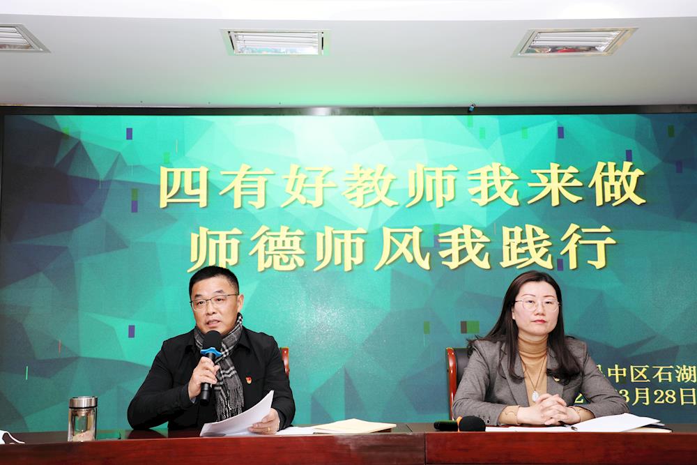 3月28日,石湖中学开展了做“四有”好教师专题培训活动。本次活动由钱爱明副校长主持。
